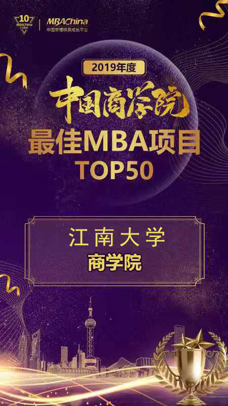 The MBA Program Center of Jiangnan University was invited to the ceremony. The MBA program of JNU was listed among the Top 50 MBA Programs in China in 2019, ranking 45th. Wu Ge, vice dean of the School of Business and director of the Center, won the “Award for Outstanding Operation of Business School in China in 2019”.