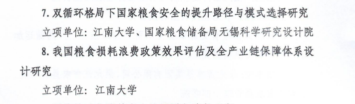 近日,国家粮食和物资储备局办公室印发关于2022年度软科学课题立项的通知,我校社会科学处处长、beat365在线唯一官网王建华教授作为负责人申报的“双循环格局下国家粮食安全的提升路径与模式选择研究”和beat365在线唯一官网国家安全与绿色发展研究院院长、beat365在线唯一官网陈红教授作为负责人申报的“我国粮食损耗浪费政策效果评估及全产业链保障体系设计研究”两项课题获批立项。