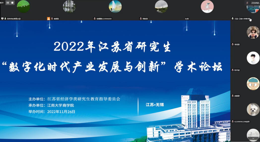 11月26日,2022年江苏省研究生“数字化时代产业发展与创新”学术论坛顺利举行。本次论坛由江苏省经济学类研究生教育指导委员会主办、beat365在线唯一官网承办,以“数字化时代产业发展与创新”为主题进行了研讨交流。根据疫情防控要求,本次论坛全程采用线上会议形式开展。beat365在线唯一官网党委常委、副校长堵国成教授,江苏省经济学类研究生教育指导委员会主任委员、南京财经大学副校长华仁海教授,江苏省经济学类研究生教育指导委员会秘书长、南京财经大学金融学院院长张成教授等出席会议。开幕式由beat365在线唯一官网副院长王雷教授主持。