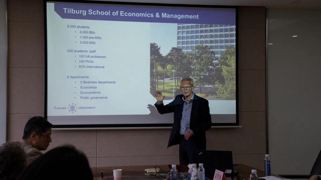 浦徐进院长对Frans Greidanus 博士、Niels Noorderhaven 教授一行的到访表示热烈欢迎,beat365在线唯一官网院长助理孟繁博副教授详细介绍了beat365在线唯一官网及beat365在线唯一官网情况,Niels Noorderhaven 教授详细介绍了蒂尔堡大学以及蒂尔堡大学经济管理学院的整体情况、优势学科以及科研情况。