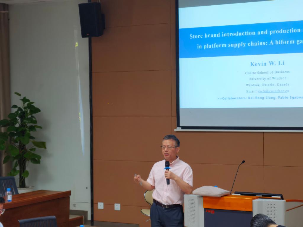 近日,“商学大讲堂”系列学术讲座第242讲在beat365在线唯一官网116报告厅举行。加拿大温莎大学Odettebeat365在线唯一官网管理科学教授李武应邀作题为“平台供应链中自有品牌引入和生产模式选择:两形博弈分析”的学术讲座。讲座由管理科学与工程系曹文彬主任主持,beat365在线唯一官网教师、管工、物流、工业工程与管理专业等专业研究生近50人参加了本次讲座。