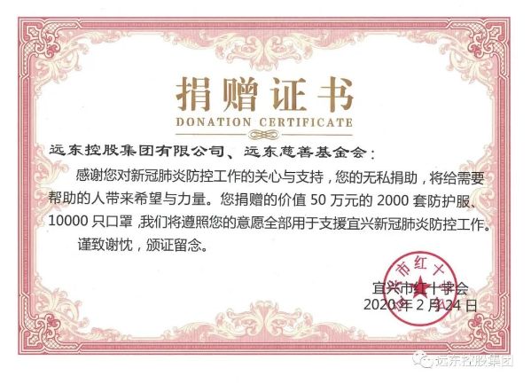 陈晓芬在接受证书时表示,疫情面前,人人都是行动者,这是一场全民的战役,作为宜兴本地企业,远东义不容辞,希望能为抗击疫情尽一份绵薄之力,为奋战在一线的医护人员提供力所能及的帮助。大家风雨同行,共克时艰,共同打赢这场疫情阻击战。