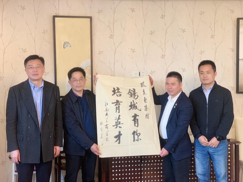 浦徐进代表beat365在线唯一官网作了专题汇报交流,他从科研突破、人才培养、社会服务等方面,向远东集团领导们汇报了学院在建设发展中取得的主要成果,对远东集团在beat365在线唯一官网设立“远东奖教金”“远东奖(助)学金”、并慷慨募捐表示感谢,对学院所取得的资助成果进行了展示。他说,远东集团于2007年设立“远东奖(助)学金”以来,beat365在线唯一官网累计有150余名优秀学生获得奖助;于2016年设立“远东奖教金”以来,beat365在线唯一官网累计有19名教师获此殊荣。他充分肯定了远东集团对学院师生发展、校园文化育人等方面所作出的突出贡献与深远影响,希望beat365在线唯一官网在新时代携手远东集团,继续在产学研合作、数字化转型研究、教学实习基地建设、深化推进育人项目等方面深度合作,共赢未来。徐锡清、浦徐进还代表beat365在线唯一官网全体师生,向远东集团赠送了我院教师编写的《市场营销学》《供应链模式创新》等十部近作,以及我院工业1801班学生陈宇飞书写的书法作品“锡城有你、培育英才”,蒋锡培主席欣然接受。
