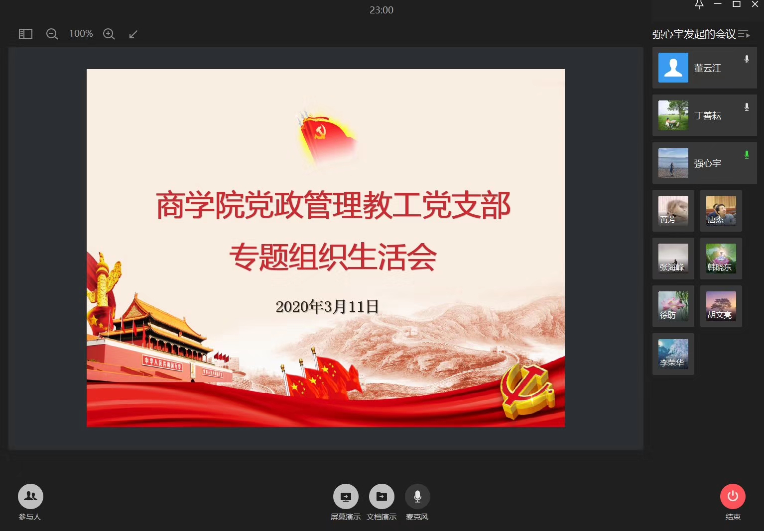 3月11日下午,beat365在线唯一官网党政管理教工党支部在线上开展“在战‘疫’中践行初心使命”专题组织生活会。