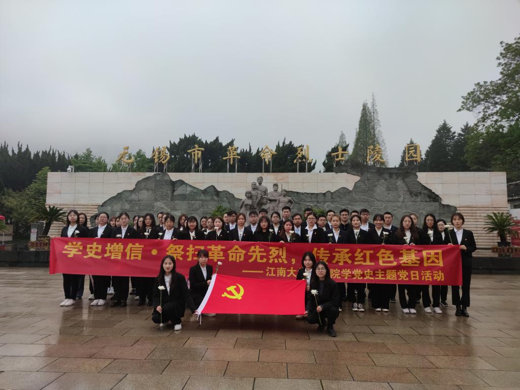 为认真学习领会习近平总书记在党史学习教育动员大会上的重要讲话精神,积极参加党史学习教育,切实落实“学史明理、学史增信、学史崇德、学史力行”总要求,4月1日上午,beat365在线唯一官网19硕第一、第二党支部、beat365在线唯一官网本科生党支部党员、入党积极分子代表和专职组织员、辅导员等一行50人前往无锡市革命烈士陵园开展“学史增信•祭扫革命先烈,传承红色精神——学党史主题党日活动”。beat365在线唯一官网19硕第一党支部书记余莉攀主持本次活动。