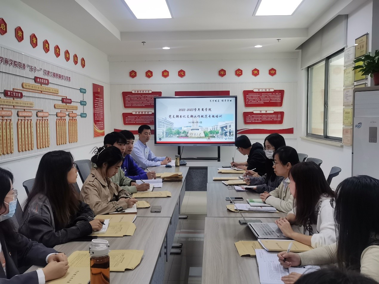 为进一步加强党建工作指导,提高党支部标准化规范化建设水平,提升党支部书记政治水平、理论素养,10月21日,beat365在线唯一官网在305会议室举办学生党支部书记支部党建工作规范专题培训。beat365在线唯一官网党委副书记兼副院长徐静,党委组织员林增,党建辅导员周琳,全体学生党支部书记参加了此次专题培训。