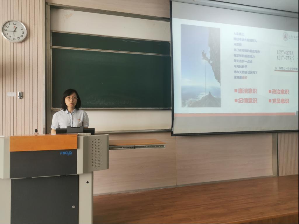 为进一步提高毕业生党员的思想觉悟、党员意识、党性修养,增强其组织观念、纪律观念和廉政意识,扎实推进党纪学习教育走深走实,5月29日beat365在线唯一官网党委在第二教学楼2C203组织“锤炼自我定力,不负时代重任”党员廉洁教育活动。beat365在线唯一官网党委副书记兼副院长徐静、专职组织员钱明霞和130余名毕业生党员共同参与本次活动。会议由党建辅导员孙旭媛老师主持。