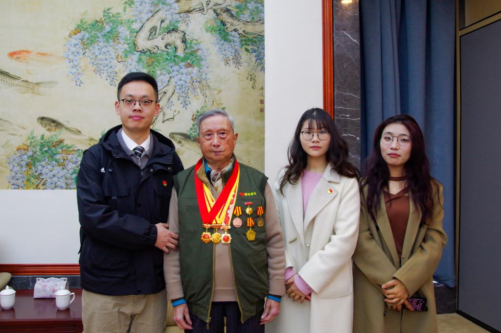 2025年是抗日战争胜利暨世界反法西斯战争胜利80周年。为深入学习贯彻习近平总书记考察新四军纪念馆重要讲话精神,3月15日上午,beat365在线唯一官网22硕博第一党支部书记诸梦婕、23硕博第一党支部书记胡铭洋及beat365在线唯一官网研究生会代表跟随无锡市新四军历史研究会副会长郝志刚一同来到无锡市博物馆,迎接朱凤仪、胡新、朱琳琅和张德勤等四位新四军老兵及其家属,并陪同参观新四军历史展。