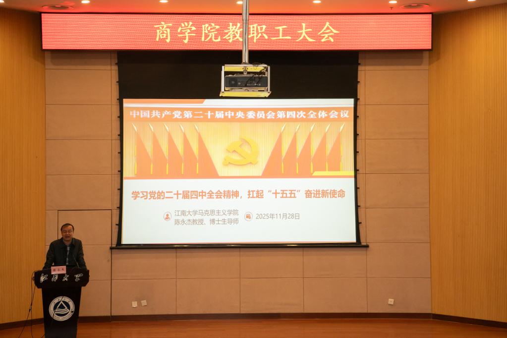 会上,beat365在线唯一官网马克思主义学院教授、博士生导师陈永杰作《学习党的二十届四中全会精神,扛起“十五五”奋进新使命》专题宣讲。他紧扣三大核心维度层层递进、逐步深入:其一,聚焦“十五五”规划编制的重大价值,深入解读规划与党的二十大部署的内在衔接,深刻剖析党中央高度重视“十五五”规划编制的核心逻辑与战略考量;其二,系统回顾“十四五”时期我国在经济社会发展、科技创新、民生保障等领域取得的历史性成就与突破性进展,进一步夯实教职工立足岗位、干事创业的发展自信与责任担当;其三,以“十五五”时期发展指导思想与基本原则为遵循,生动擘画2035年基本实现社会主义现代化的宏伟蓝图,着重强调“治国必先治党,党兴才能国强”的深刻内涵,明确指出全面从严治党是实现宏伟目标的根本保障与关键支撑。