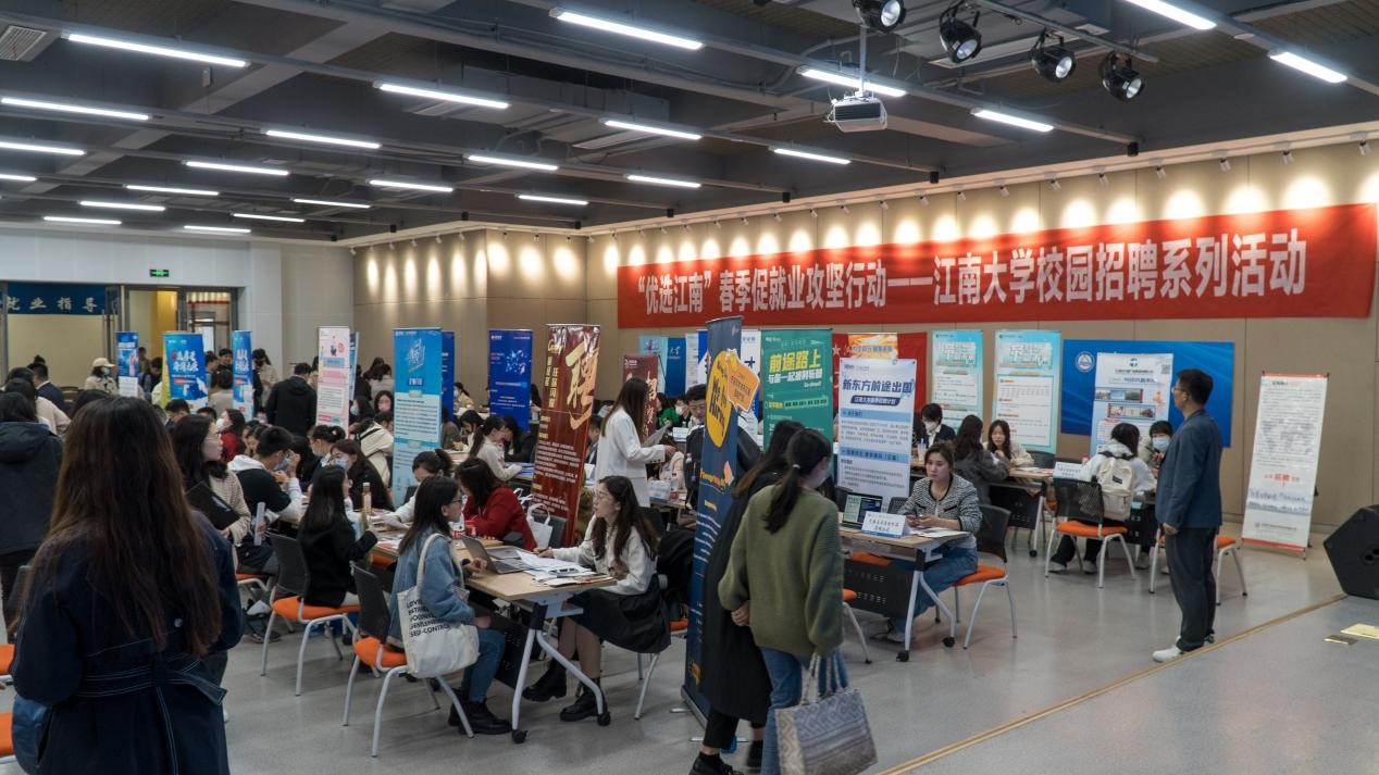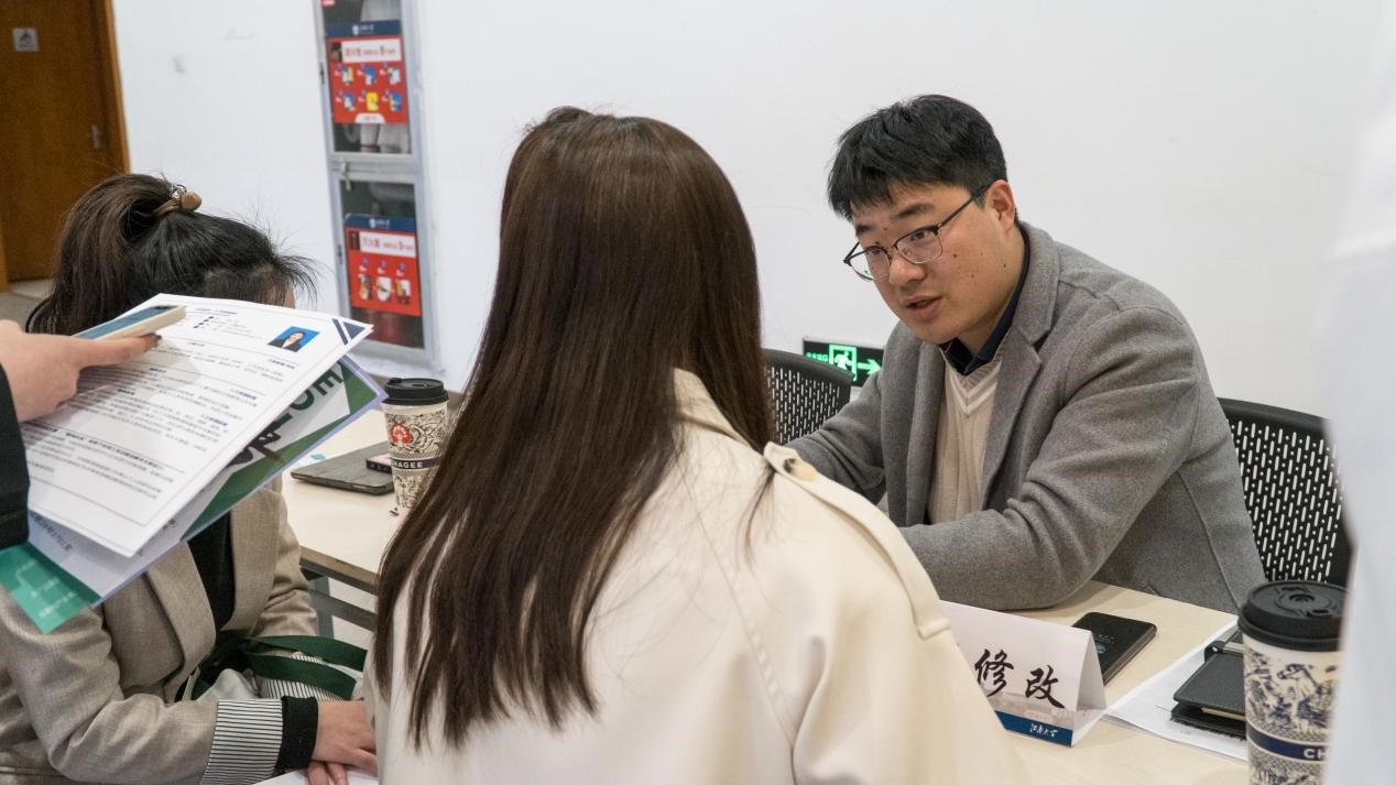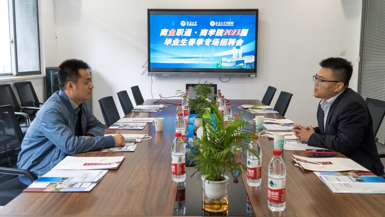 招聘会期间,院长浦徐进、党委副书记兼副院长徐静前往会场,和企业相关负责人、招聘专员以及求职应聘的学生进行了亲切交谈,深入了解了当前用人单位的招聘需求和学生的求职诉求,鼓励同学们主动与面试官交流,把握时机,尽早就业、高质量就业。参会企业在展位前陈列好宣传展架与招聘册页,积极地向学生作企业理念、招聘岗位、职能需求和薪资待遇等方面宣讲介绍,热情接待应聘学生并为其答疑解惑,并对招聘会的组织筹备表示高度认可。此外,为做好自身职业生涯规划、了解本专业就业前景,部分有强烈实习意愿的其他年级同学闻讯来到现场,与企业单位咨询交流、加深了解,与校就业工作负责老师解晏宁、薛羚伟就考公考编、简历修改等方面作细致请教。