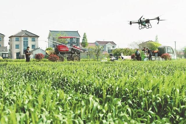 太仓市双凤镇绿色优质水稻基地无人植保机喷洒防病除虫农药现场