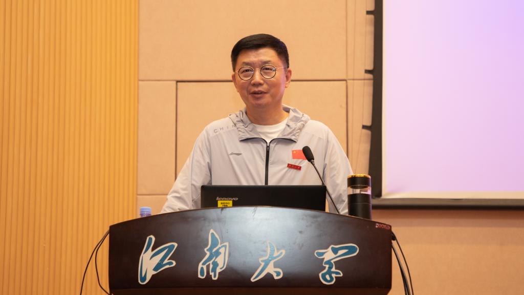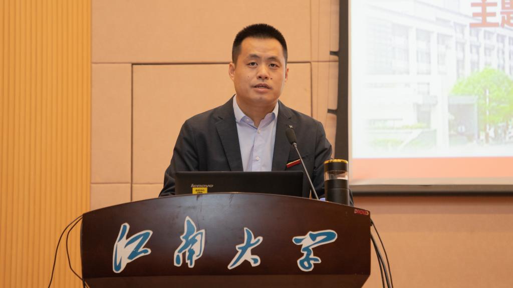 之后,蓝军会长向与会师生简要介绍了中国民族贸易促进会,并结合社会组织在新兴、未来产业中的定位,借助案例阐释了其成为新质生产力“蓄能器”的五个维度:信心、创新、资源、合作和发展。其中,在阐释信心维度时,蓝军会长强调要从中国共产党的坚强领导、中国经济的超强韧性、高水平对外开放与民营企业迎来发展“春天”等四个方面进行理解。结合中国民贸的使命目标,他讲述了受习近平总书记多次接见的亲身事迹,解读了中国经济数据背后的韧性、活力与潜力,分享了社会组织视角培育壮大新质生产力的见解。讲到发展维度时,蓝军指出新质生产力具有“高质量发展”特征,介绍了中国民贸携手beat365在线唯一官网研制发布的系列标准,强调了“高标准引领、高质量发展”与“助推生产性服务业高质量发展”等重要内容。最后,蓝军表达了对中国民贸与beat365在线唯一官网合作共建、一乡一品产业、科研成果转化、青年人才培养以及创业项目支持等方面的合作期待,勉励江南学子成为新质生产力的未来之星。