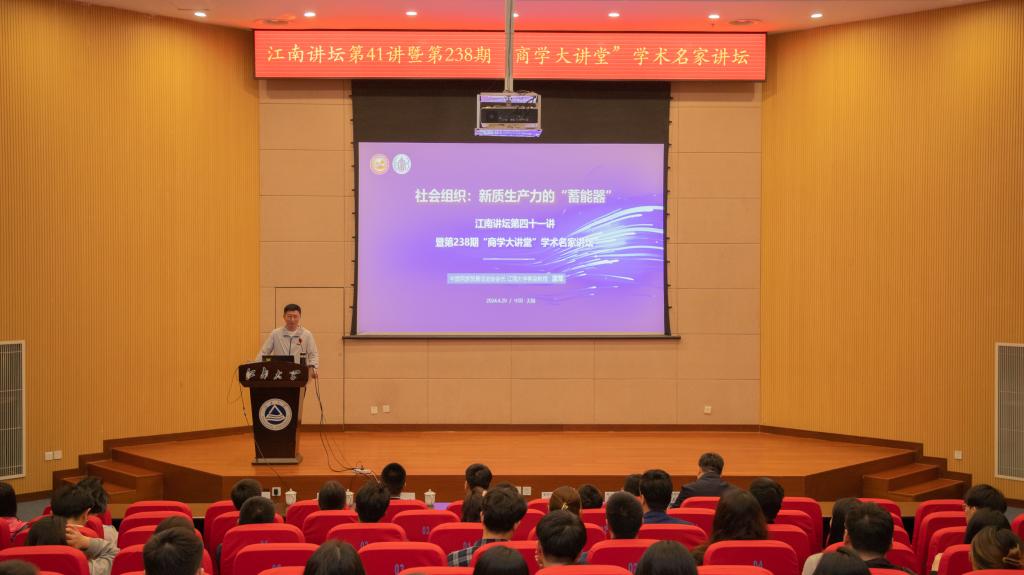 江南讲坛第四十一讲暨第238期“商学大讲堂”学术名家讲坛:《社会组织:新质生产力的“蓄能器”》