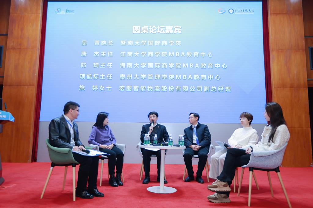 总决赛期间主办方举行了第一届研究生管理实践创新能力发展论坛,以管工交叉、产教融合助力研究生管理实践创新能力发展为主题,共同探讨数智化时代背景下研究生管理实践创新能力的培养与创新发展之路。我校MBA/MEM教育中心办公室主任唐杰老师受邀参加圆桌论坛,唐杰老师向与会老师们分享了我校beat365在线唯一官网近年来如何通过做好本土化生态打造专业学位产教融合高质量发展的“江南模式”。