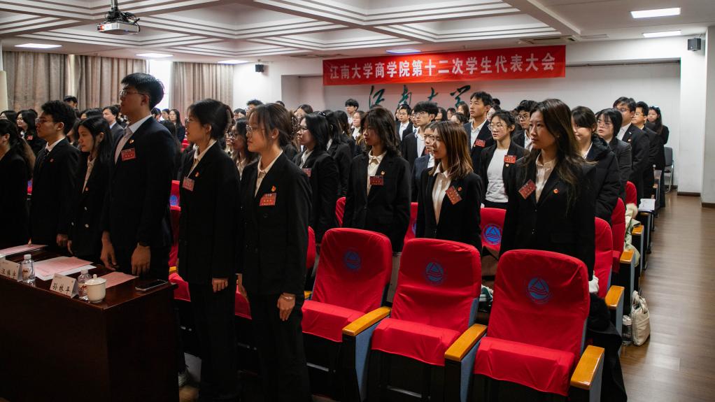 在嘹亮的国歌声中,大会正式开幕。本次大会收到了物联网工程学院、人工智能与计算机学院、人文学院等兄弟学院的贺信贺电。人工智能与计算机学院学生会、物联网工程学院研究生会主席团成员应邀到会,代表兄弟学院学生会、研究生会向大会的召开表示祝贺。