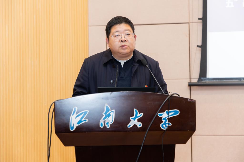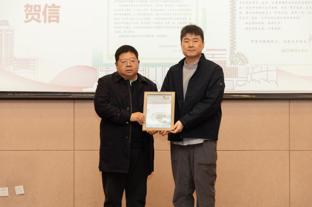 会前,全体教职工共同观看学习了“时代楷模”陈立群《我心中的教育家精神》专题视频短片。会议伊始,刘长青为王建华教授和食品安全与国家战略治理实验室颁发校领导贺信。校长陈卫向2025年度学院重大贡献者王建华教授发来贺信,祝贺王建华教授申报的《大国博弈和地缘政治风险对我国粮食安全的影响》成功获批2025年度国家社科基金重大项目。校党委书记吴正国为食品安全与国家战略治理实验室发来贺信,感谢以吴林海教授为代表的团队做出的贡献。食品安全与国家战略治理实验室成功入选教育部第二批哲学社会科学实验室,实现了学院国家级哲学社会科学平台零的突破。