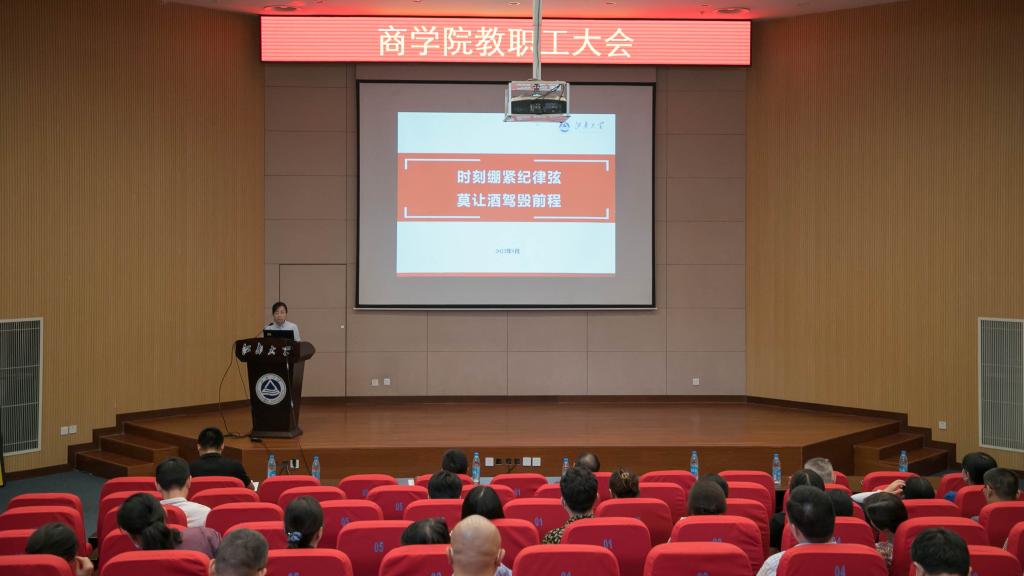 院党委副书记徐静传达了学校关于开展酒驾醉驾问题专项整治工作的相关要求,宣读了“珍爱生命,拒绝酒驾”倡议书,并以《时刻绷紧纪律弦 莫让酒驾毁前程》为题进行了专题宣讲。