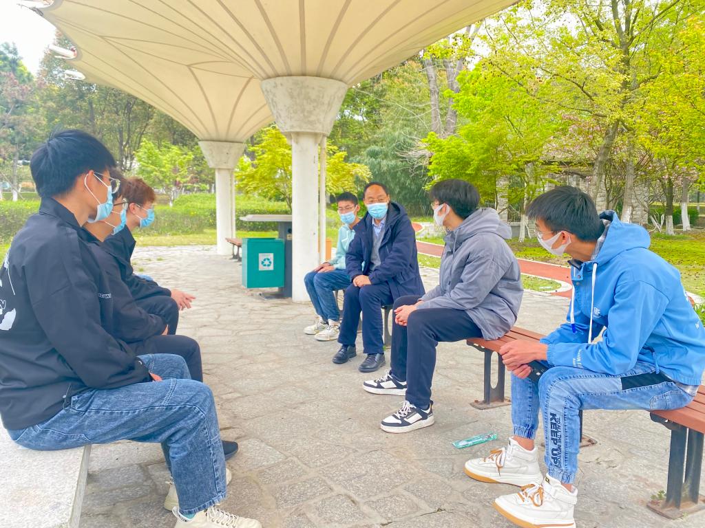 学院本科生人数众多,学生宿舍分布在南北区11个园区。为确保联系学生宿舍全覆盖,机关党委主动对接学院,安排28名中层干部担任学院56间宿舍224名2021级学生的“宿舍导师”。导师们利用住校值班的空余时间,主动邀约联系学生,在为学生送去水果零食的同时,鼓励学生珍惜当下时光、坦然面对疫情、认真上好网课、适度锻炼身体、携手“尚”学筑梦。
