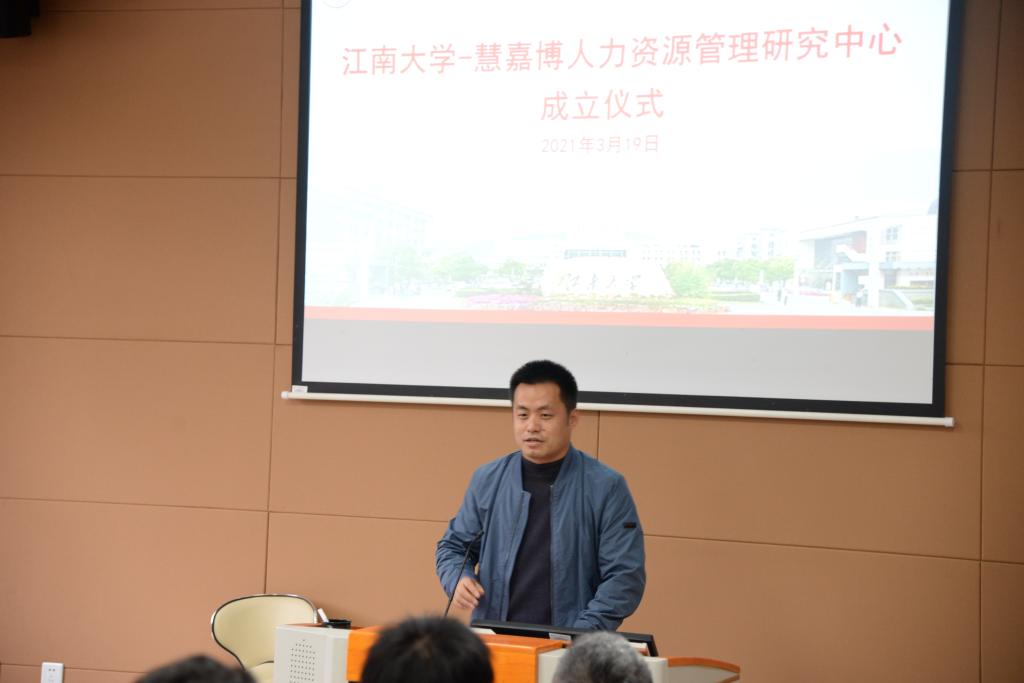 蒋丹董事长介绍了隶属于江苏慧嘉博人力资源集团的江苏开心工作科技有限公司情况,该公司以线上技术与线下服务相融合为发展方向,致力于为客户提供高质量人力资源综合解决方案。“beat365在线唯一官网-慧嘉博人力资源管理研究中心”的成立,将为深化双方合作研究、服务区域人力资源开发贡献力量,今后双方要开展深度合作,共同提升研究中心的社会服务与决策咨询能力。朱晋伟教授介绍了无锡市人力资源开发研究基地发展情况,以及取得的研究成果,同时还对“beat365在线唯一官网-慧嘉博人力资源管理研究中心”未来发展方向、重点工作做了详细介绍。