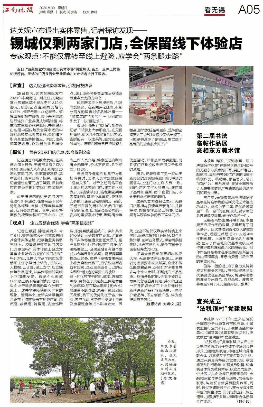 近日,“达芙妮宣布彻底退出实体零售”引发热议,甚至一度冲上网络热搜榜首。无锡的门店是否会受此影响?对此,《江南晚报》记者专门进行了现场探访和专家采访。