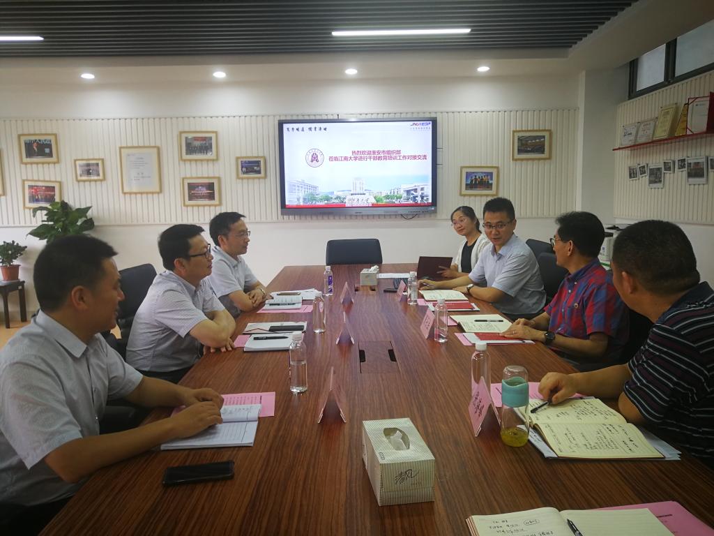 7月8日下午,淮安市委组织部一行到访beat365在线唯一官网开展干部教育培训工作对接交流。座谈交流会在beat365在线唯一官网308会议室举行。淮安市委组织部副部长、市公务员局局长姜筱卉、淮安市委组织部干部教育处处长赵纪辉、淮安市委党校教务处处长钱怀如、我校beat365在线唯一官网院长滕乐法、我校beat365在线唯一官网书记张海峰等参加会议。