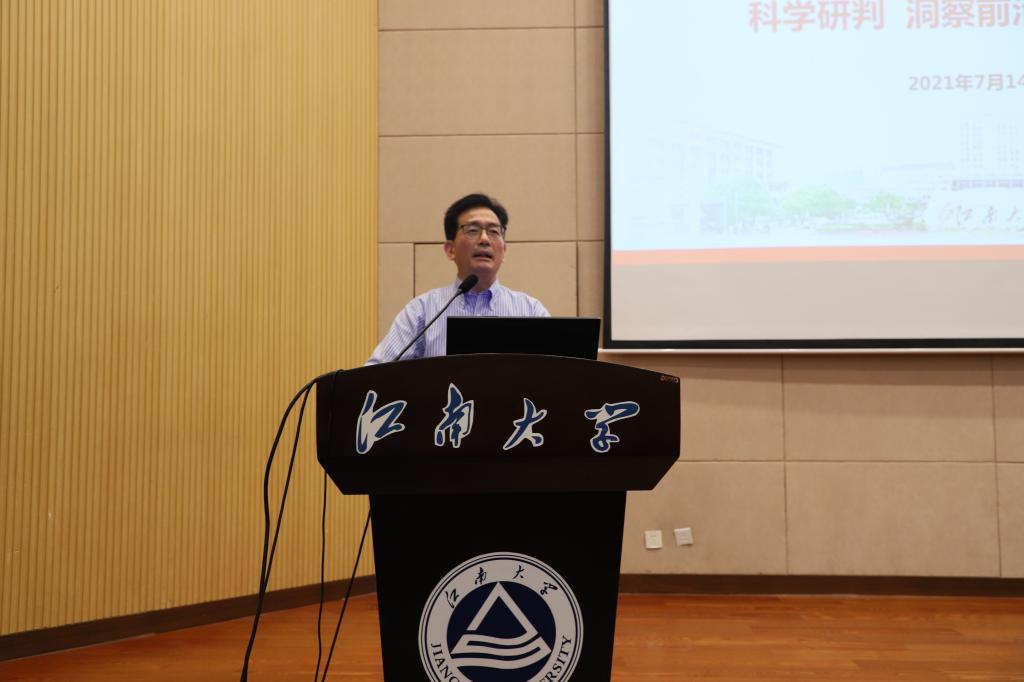 接着,滕乐法院长以“科学研判、洞察前沿、做好本分”为题,传达校科研工作大会精神,重点围绕陈卫校长所作主题报告,就beat365在线唯一官网在“十三五”期间科研工作取得的成绩,通过分析存在的差距和短板,结合学校“十四五”科研工作布局进行思考交流。他提出,下阶段学院要科学对标兄弟高校和专业,优化科研激励制度,进一步形成学科优势、专业特色,加强以竞争能力为重点的学术共同体建设,要研究真问题,善于瞄准最前沿、最核心的问题开展教学科研工作,要成为大先生,做学生为学、为事、为人的示范,促进学生成长为全面发展的人。最后,他希望老师们利用暑期,发挥专业优势,不断提升服务区域发展能力,过好充实、平安、健康的暑期生活。