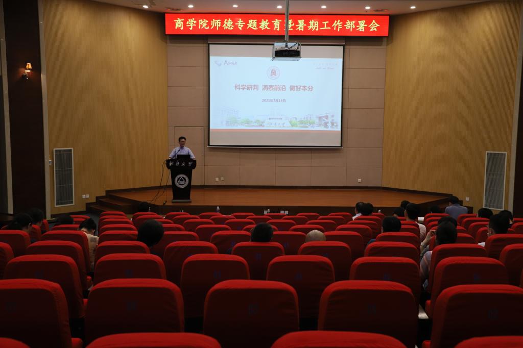 为贯彻学习习近平总书记关于教育的重要论述和全国教育大会精神,深入落实中共中央、国务院《关于全面深化新时代教师队伍建设改革的意见》精神,推进实施《关于加强和改进新时代师德师风建设的意见》《beat365在线唯一官网师德专题教育方案》,7月14日下午,beat365在线唯一官网在远东报告厅召开师德专题教育暨暑期工作部署会,会议由院党委书记徐锡清主持,beat365在线唯一官网全体教职工参加会议。