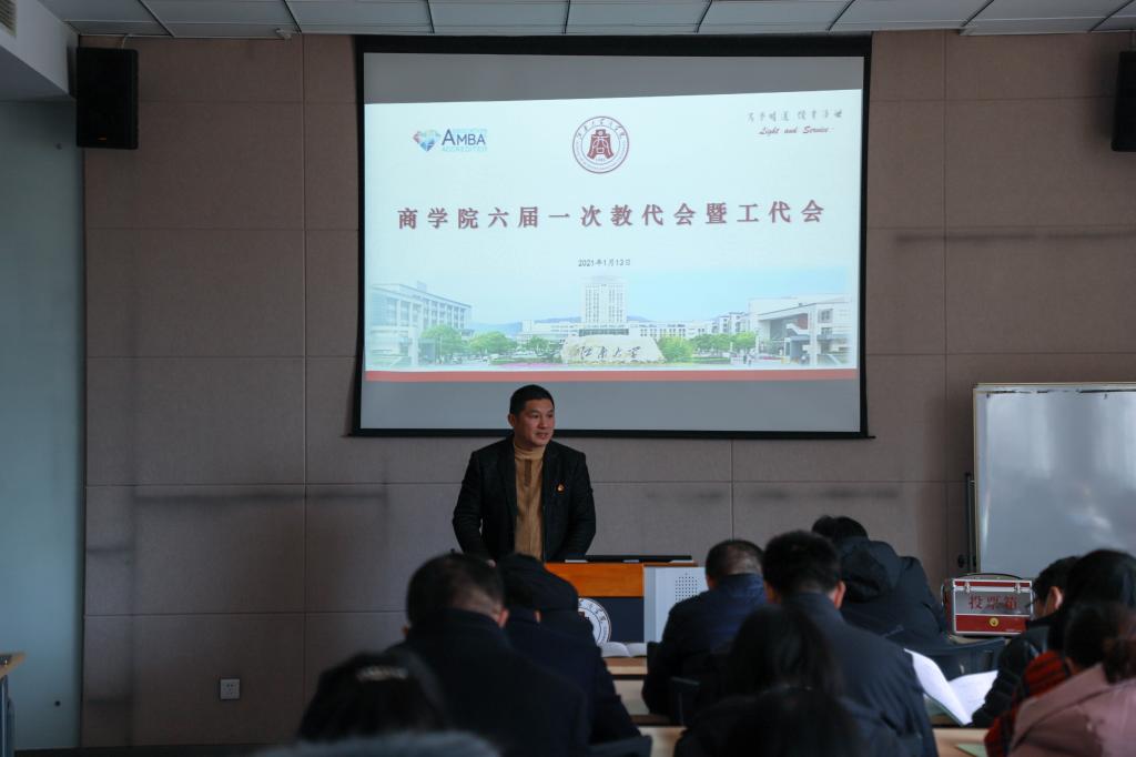 1月13日下午,beat365在线唯一官网六届一次教代会暨工代会在学院119室召开。本次会议主题是以党的十九届五中全会精神为指引,回顾总结学院工作,对学院“十四五”教育事业改革发展规划纲要、院分工会工作报告及院财务结算报告进行审议,并投票选举产生新一届两代会执委会及院分工会委员。本次会议应到正式代表45人,实际到会45人,列席代表3人,代表们济济一堂,共beat365在线唯一官网发展大计。院党委书记张海峰主持会议。
