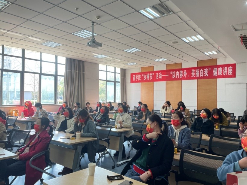 3月11日下午,beat365在线唯一官网“女神节”活动——“以内养外,美丽自我”健康讲座在119德新厅举行。无锡市中医医院针灸科主任、无锡市非物质文化遗产“杜氏金针手法”传承人丁敏主任医师受邀主讲“穴位保健与刮痧”健康专题讲座。本次讲座由beat365在线唯一官网分工会举办,院党委副书记徐静等40余位女性教工参加了本次活动。
