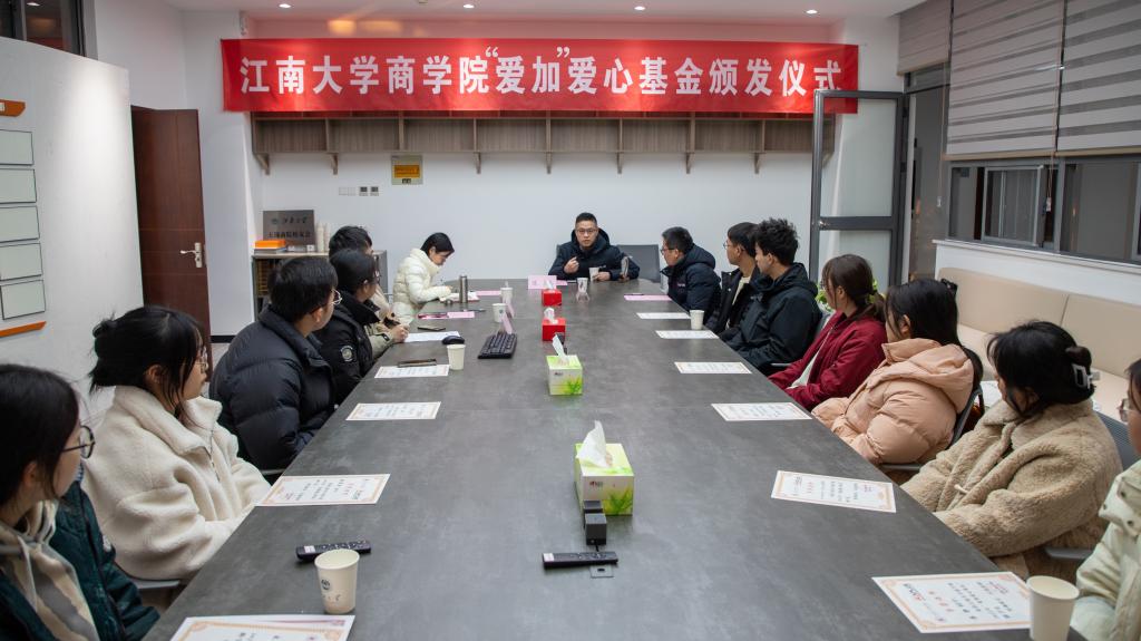 1月9日下午,beat365在线唯一官网“校友之家”会议室里济济一堂、暖意融融。beat365在线唯一官网“爱加”爱心助学金颁发仪式在此举办,无锡爱加电机设备有限公司总经理、beat365在线唯一官网99级校友陈兵,无锡爱加电机设备有限公司运营总监江舟,beat365在线唯一官网党委副书记徐静,辅导员曹梦然及获助学生参加活动,仪式由辅导员蒋天琪主持。