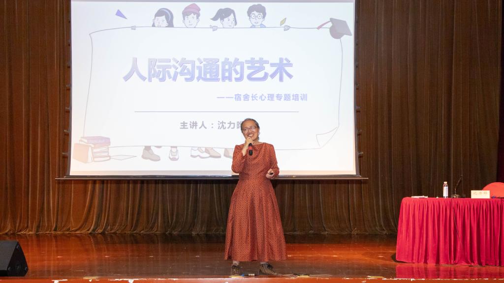 在宿舍生活中,由于个人习惯不同、沟通方式不同、时间安排不同、个人性格不同等一系列情况,容易产生宿舍内耗和宿舍矛盾。最后环节,沈老师让四组同学进行了四个宿舍矛盾产生到化解的小短剧表演。同学们生动有趣的表演让现场欢笑连连,沈老师也强调到为了营造和谐的宿舍氛围,理性处理冲突是营造和谐宿舍的有效措施。