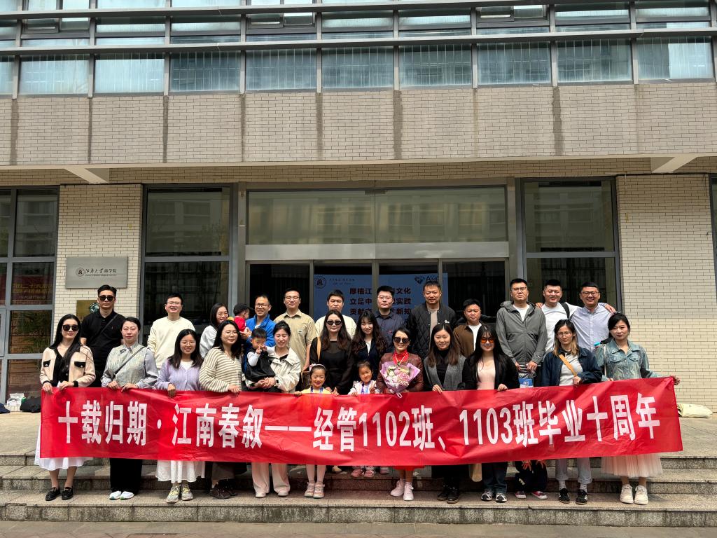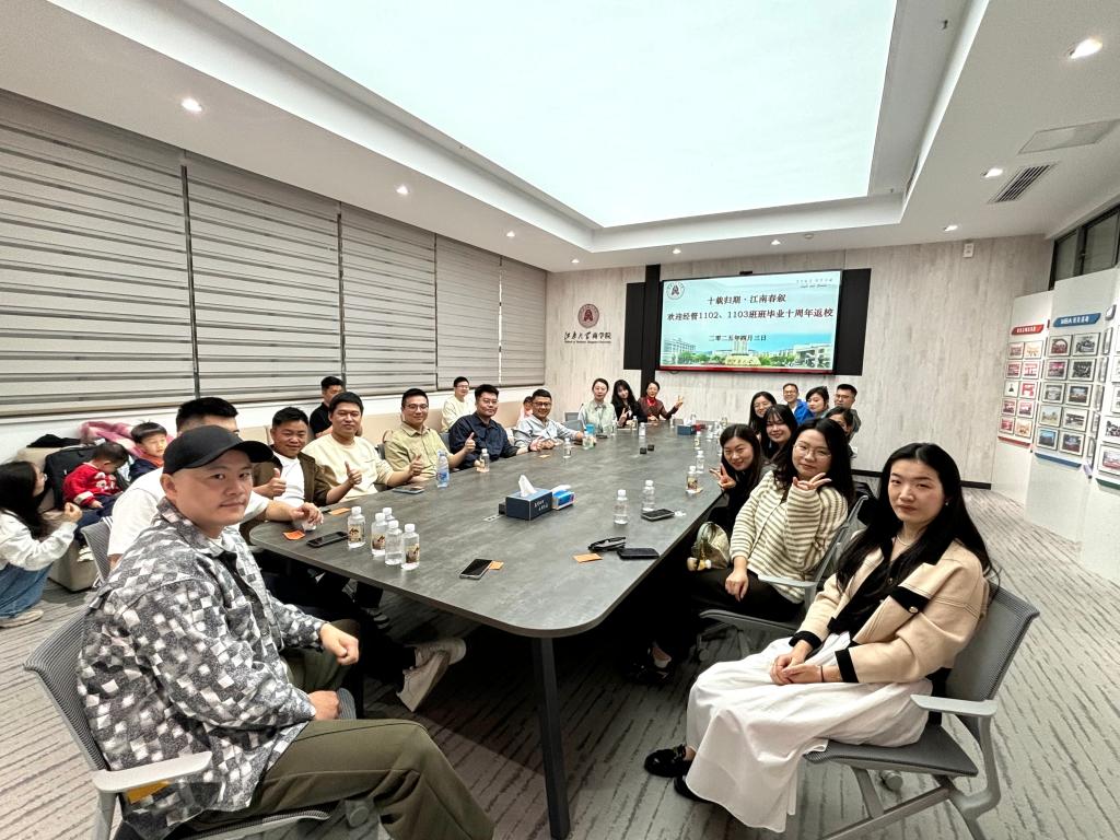 4月5日上午,beat365在线唯一官网经管1102、1103班校友从五湖四海重返母校,共庆毕业十周年。beat365在线唯一官网教师丁善耘、蒋天琪参加返校活动。