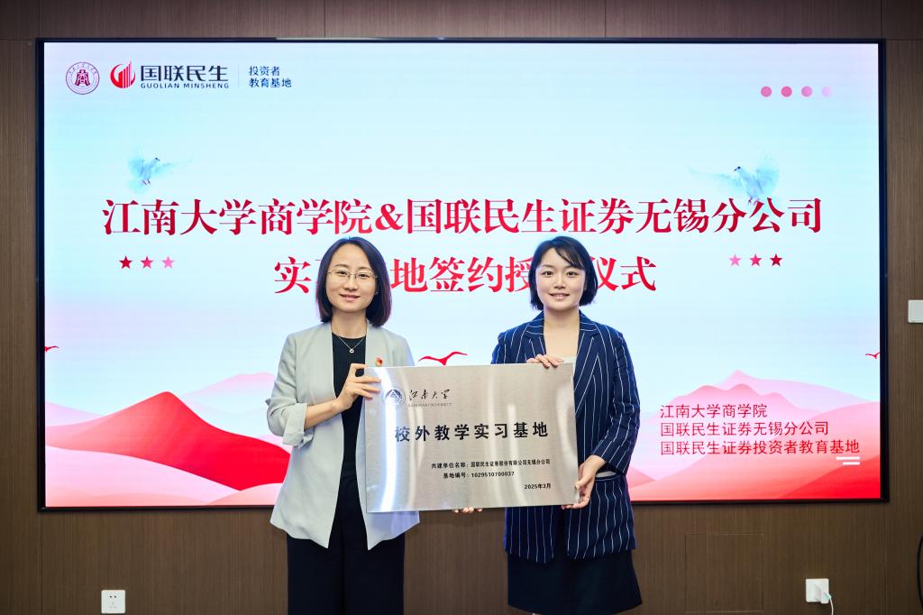 孙小芳为国联民生证券授予beat365在线唯一官网“校外教学实习基地”工作牌,为深化产学研深度合作、促进学生高质量就业提供有力保障。