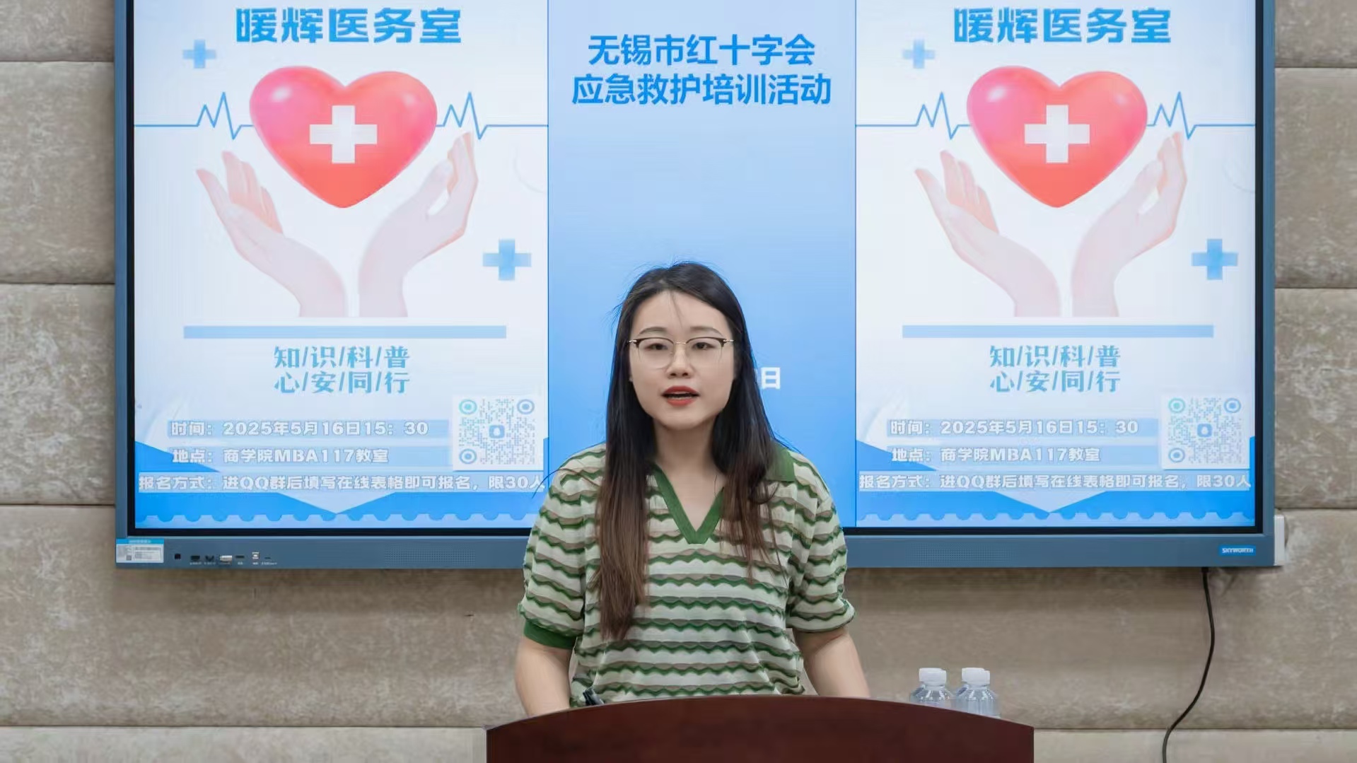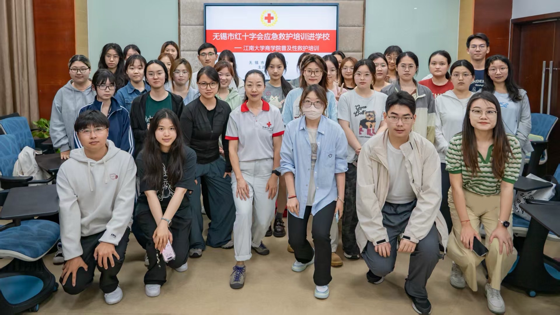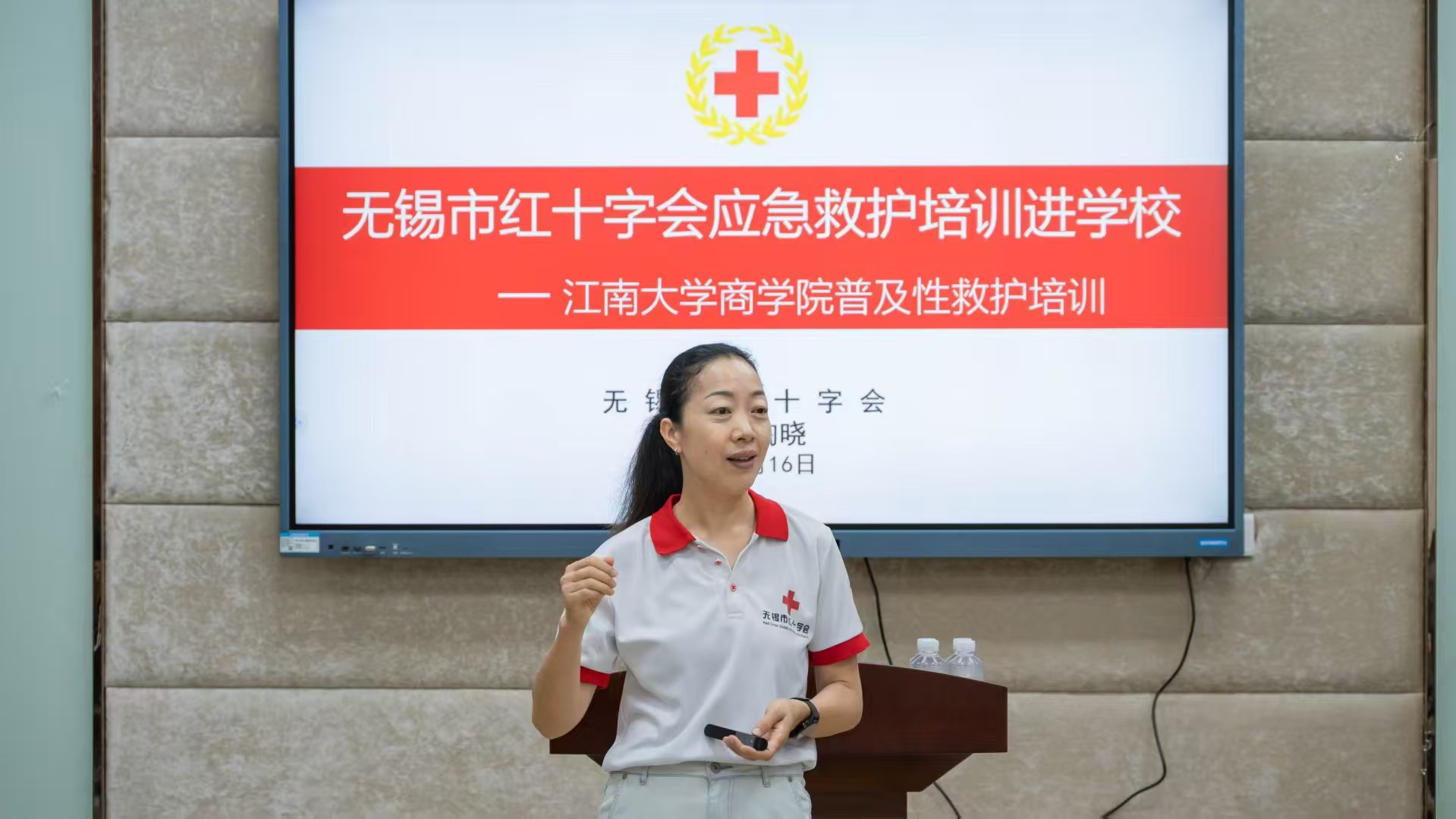 5月16日下午,beat365在线唯一官网联合无锡市红十字会,在学院117教室举办“应急救护培训进校园——暖辉医务室”专题活动。活动邀请无锡市红十字会专业老师陶晓作专题培训,30名beat365在线唯一官网学生参加系统理论教学和实操演练。活动由beat365在线唯一官网心理工作辅导员田雨主持。