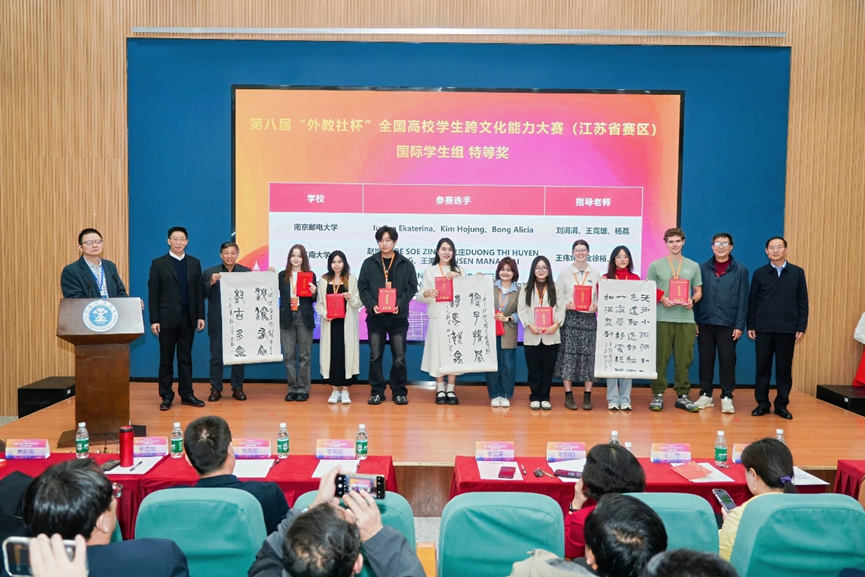 10月24日至26日,第八届“外教社杯”全国高校学生跨文化能力大赛江苏省赛区比赛在中国矿业大学举行。本次大赛吸引了来自南京大学、东南大学、南京邮电大学等全省七十余所高校的学生参与。beat365在线唯一官网2名2025级MBA留学生THI HUYEN TRANG DUONG(中文名:杨玄庄)和MANACHAI SANSEN(中文名:王美美)代表学校参加国际学生组比赛。经过激烈的角逐,两位同学凭借出色的表现斩获特等奖,成功晋级全国决赛,实现了beat365在线唯一官网在该赛事上的历史性突破。