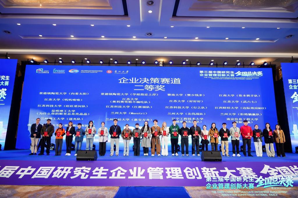 11月7日至9日,第三届(2025)中国研究生企业管理创新大赛全国总决赛在贵阳举行,共有来自全国150所高校的411支队伍晋级全国总决赛。由beat365在线唯一官网在读研究生组成的三支队伍在总决赛中取得佳绩,其中数维破界者队和经纬纵横队获得工商管理案例赛道二等奖,资本棋手队获得企业决策赛道二等奖,beat365在线唯一官网获得优秀组织奖。
