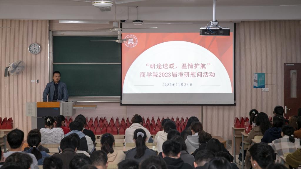 情系考研生,冬日送温暖。2023届考研考生进入一个月倒计时之际,为帮助考研学子们坚定目标、调整心态、树立信心、增添动力,beat365在线唯一官网于11月24日下午在第二教学楼举办“研途送暖,温情护航”2023届考研学生慰问活动。学院领导给予高度重视,院长浦徐进、院党委副书记兼副院长徐静出席本次活动,与毕业年级辅导员、各班就业信息联络员一起,为即将考研的同学们送去温暖、鼓劲加油。