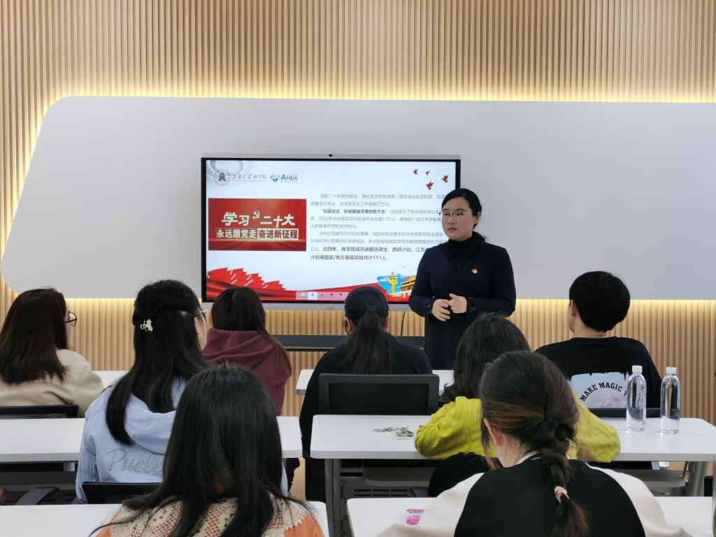 beat365在线唯一官网分团委书记王璁围绕项目简介、招募选拔、政策保障、服务管理等方面详细解读国家/地方基层项目情况,并向广大青年学子发出号召,积极踊跃参与国家/地方基层项目,在全面实施乡村振兴的新征程中,挥洒青春和热血。