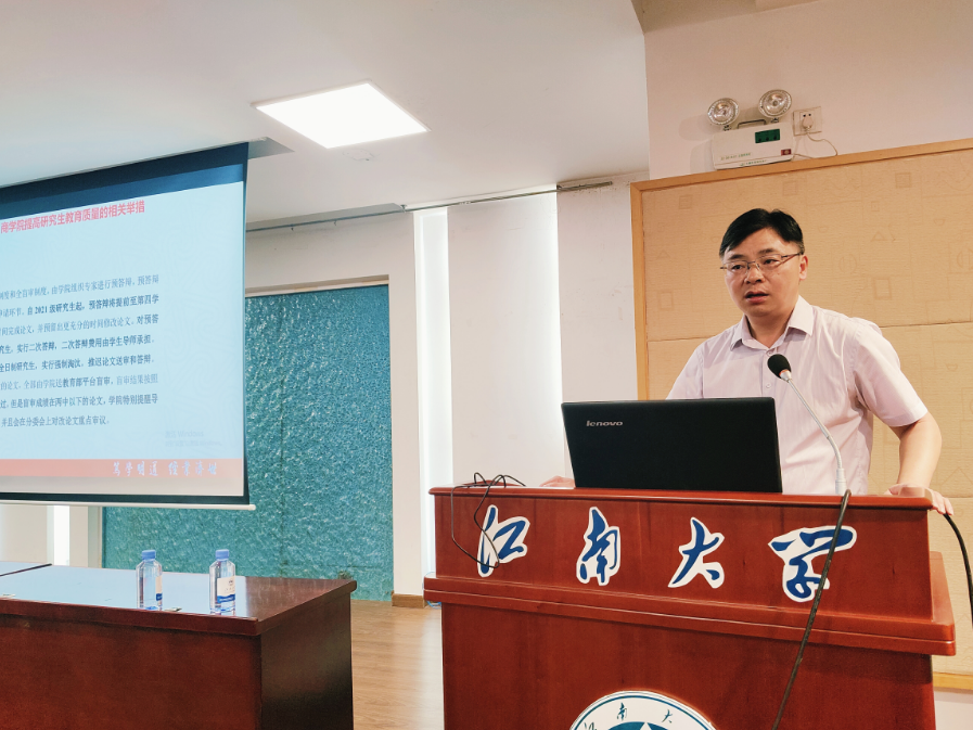 王雷聚焦“提高研究生教育质量的相关举措”“全日制硕士研究生论文答辩与学位申请的有关规定”“校级优秀硕士论文评选推荐办法”“beat365在线唯一官网博士硕士学位论文抽检及结果处理办法”“研究生科学道德与学风建设”五个版块,为研究生同学详细介绍学院概况、学涯规划等内容。他寄语新生,在研究生期间尽量广地涉猎学科基本知识,建立合理的知识结构,掌握独立研究的方法和技能,同时正确面对困境,用辩证的眼光去看待问题,做阳光健康的科研工作者。