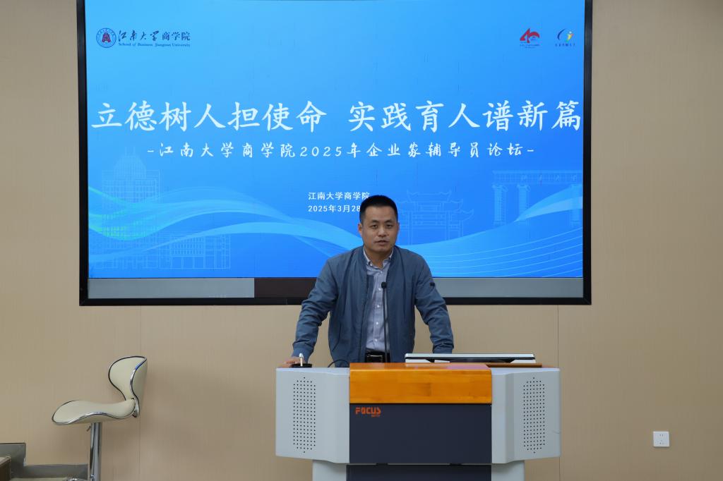 浦徐进以“打造数智时代高质量商学教育”为主题,介绍学院发展概况以及“企业家辅导员”项目建设详情。他强调,开创于2013年10月的“企业家辅导员”校企协同实践育人项目,12年来已累计聘任204位企业家辅导员、开展在校辅导活动760余次、提供就业实习岗位3000余个,惠及学生1万余人。未来,学院将以“企业家辅导员”项目入选2025年度教育部高校思想政治工作精品项目为契机,进一步拓展实践育人空间,推动项目向2.0版本迈进。