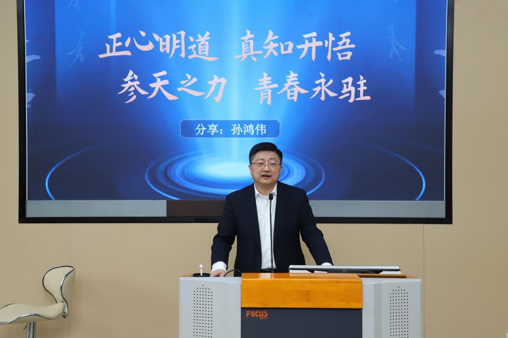 孙鸿伟以《正心明道,真知开悟;参天之力,青春永驻》为主题作报告。他结合自身实践经验与深度思考,指出“正心明道”即“立德”,“真知开悟”即“言用”,在科技日新月异的时代,人才培养应遵循“德才兼备、品德第一,学用并重、能效第一”的标准,并以产教融合赋能教育高质量发展。