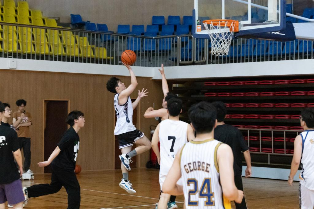 随着哨声响起,经济学部率先发力,凭借默契配合连得6分,展现扎实的战术素养。管理学部迅速调整策略,通过快速反击和精准三分球紧咬比分,队员郑航峰外线连续命中,点燃全场热情。中场战罢,双方分差仅剩3分。