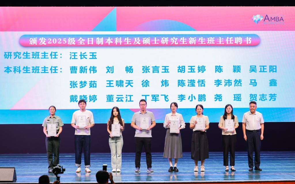为精准指导新生适应大学环境并提供全方位关怀,学院聘任25位新生班主任。金融2502班班主任贺志芳作为班主任代表发言。她寄语新同学,心怀家国,志存高远,做有格局的追梦者;勤学善思,求真务实,做有深度的学习者;融入集体,互帮互助,做有温度的合作者;认识自我,坚韧不拔,做有韧性的成长者。