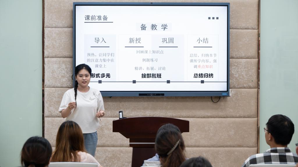 付沅平围绕“如何上好一堂课”,明确了学业辅导员授课核心要点。她指出,学业辅导员课前准备需承担“知识研究者”“教学设计者”“资料筹备者”三重角色,按“导入-新授巩固-小结”设计流程,备好例题等资料,为授课打基础,并用讲授、讨论等方法总结问题、优化授课。