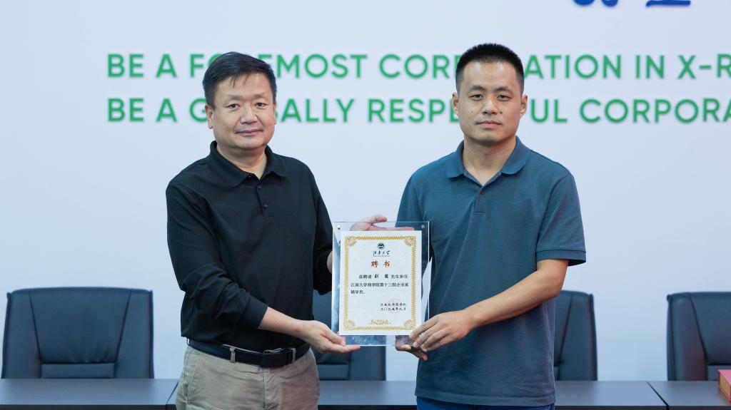 活动中,浦徐进为刘骏颁发beat365在线唯一官网“企业家辅导员”聘书,并赠送beat365在线唯一官网建院40周年纪念礼物。他表示,希望日联科技能够将丰富的产业经验、创业智慧传递给学生,帮助更多的江南学子在专业学习与职业规划中找到方向,推动校企双方在人才培养、科研合作上深化联动。