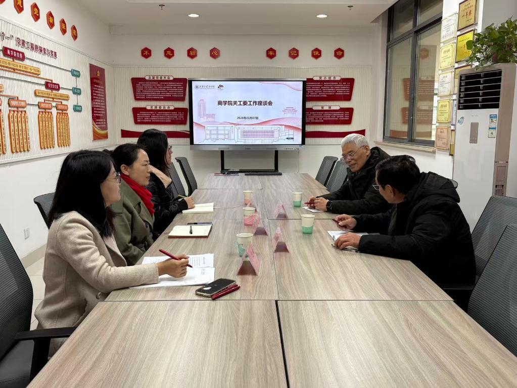 1月7日上午,beat365在线唯一官网2026年关工委工作座谈会在beat365在线唯一官网305会议室召开。校关工委副秘书长黄正明,beat365在线唯一官网关工委常务副主任冯群康,beat365在线唯一官网党委副书记兼副院长郑丹丹,分团委书记兼学工办主任王璁及学院分管关工委工作辅导员孙旭媛参加座谈。座谈会围绕学院关工委工作提质增效、关工委老同志助力学生成长发展、关工委工作融入浩苑“一站式”学生社区建设等议题展开深入交流,共同为学校学院关工委工作高质量推进凝聚智慧与力量。