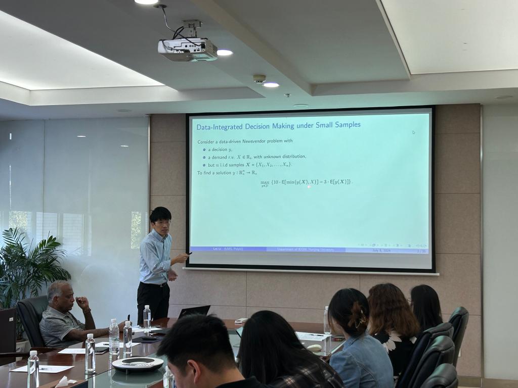 7月5日上午,青年博士学术工作坊第九期在beat365在线唯一官网304会议室举行。普渡大学的J. George Shanthikumar教授和香港理工大学的李磊副教授应邀分别作题为“Consumer Choice Probability Models-Temporal Trees, Representation and Identification”和“Transfer Learning, Cross Learning and Co-Learning Across Newsvendor Systems with Operational Data Analytics (ODA)”的学术讲座。讲座由beat365在线唯一官网徐磊副教授主持,beat365在线唯一官网教师和各专业研究生40余人参加了此次讲座。