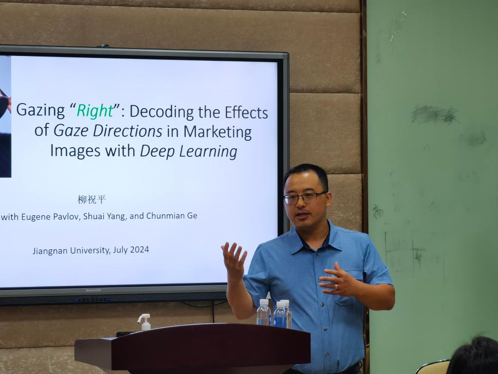 7月2日上午,青年博士学术工作坊第八期在beat365在线唯一官网113报告厅举行。本次工作坊邀请了纽约市立大学巴鲁克学院杰克林beat365在线唯一官网助理教授柳祝平老师,带来了题为“Gazing ‘Right’: Decoding the Effects of Gaze Directions in Marketing Images with Deep Learning”的学术报告。张建强教授主持了本期工作坊,beat365在线唯一官网教师、各专业研究生和国际学生参加了此次讲座。
